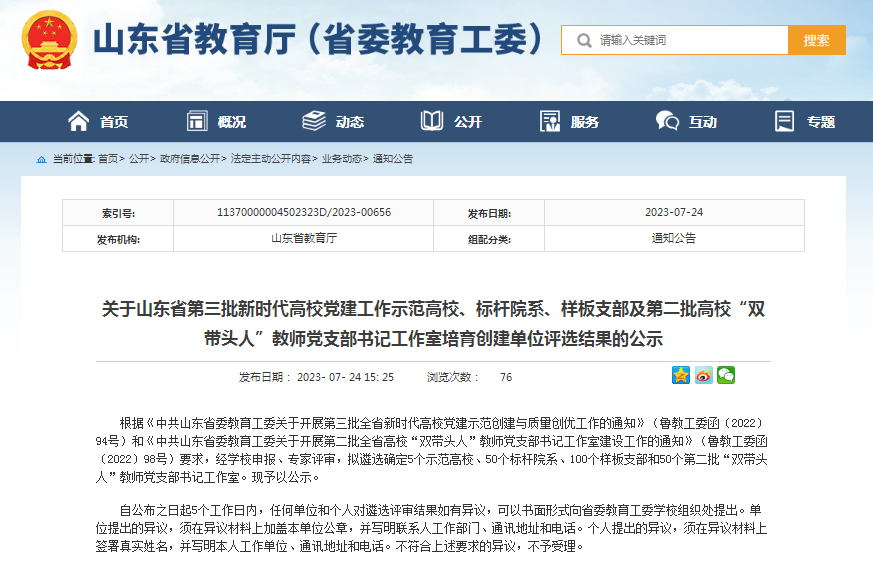 全省高校“双带头人”教师党支部书记工作室是中共山东省委教育工委进一步推进高校教师党支部书记“双带头人”培育工程实施的重要举措。“双带头人”教师党支部书记工作室建设坚持以习近平新时代中国特色社会主义思想为指导,深入学习贯彻党的二十大精神,全面贯彻党的教育方针,按照新时代党的建设总要求和新时代党的组织路线,以高校教师党支部为依托,完善建设标准,强化教育培养,深化改革创新,健全完善符合高校实际、兼顾学科专业特点、可示范可推广的“双带头人”教师党支部书记培育工作体制机制,不断增强高校基层党组织政治功能和组织功能,引领带动全省高校党建和业务工作质量全面提升,助推全省高等教育高质量发展。山东省第二批“双带头人”工作室由山东省委教育工委面向全省高校,以2年为一个周期支持建设,由符合“双带头人”条件的教师党支部书记作为负责人主持开展工作,重点围绕建设任务,创新工作方法,创建平台载体,创立典型示范,着力发挥党支部战斗堡垒作用和党员先锋模范作用。