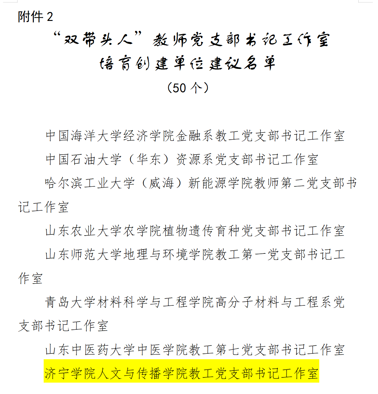 近日,山东省第二批高校“双带头人”教师党支部书记工作室培育创建单位评选结果公布。此次共遴选确定50个“双带头人”工作室,伟德国际victor1946教工党支部书记工作室名列其中。