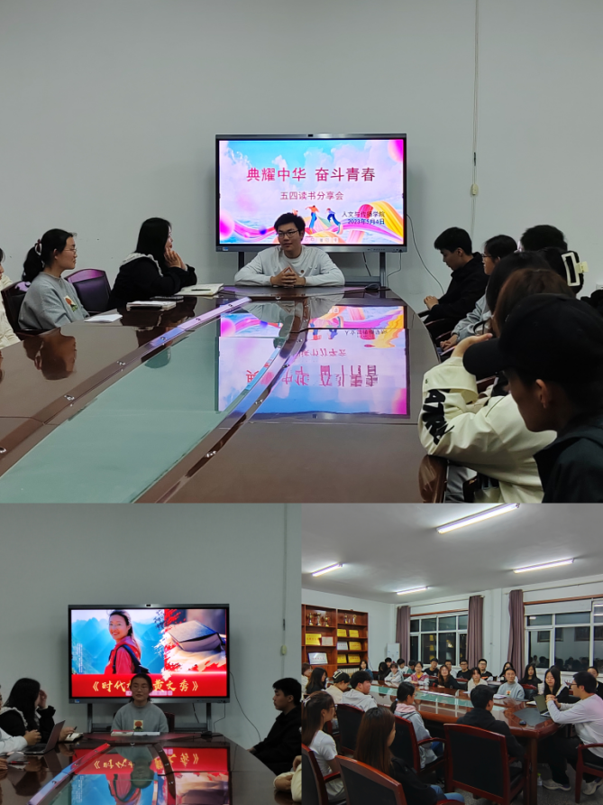 5月4日晚,伟德国际victor1946在会议室开展“典耀中华奋斗青春”五四读书会。读书会邀请了2022级汉语言文学班赵磊、2022级历史学班陈玉婷作读书分享。