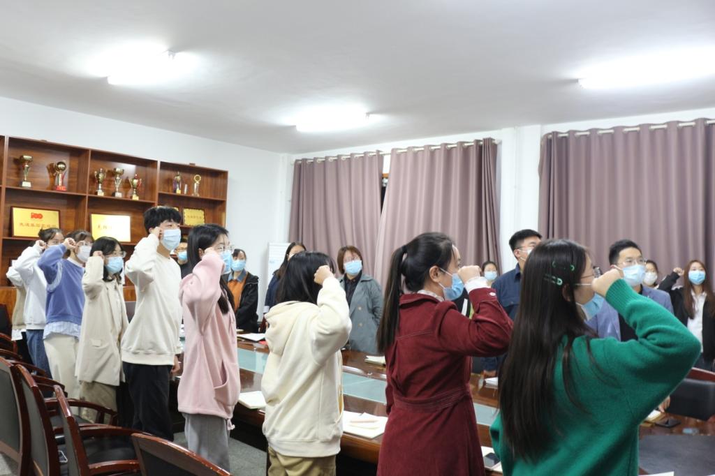 大会第六项。全体学生会干部宣誓:秉承“博学笃志、择善敦行”校训,弘扬“至诚至朴、求是求新”校风,努力成为具有坚定信念、高尚情操、专业知识、应用能力、“双创”意识、数字素养、健全人格、健康体魄、儒家文化特质鲜明的高素质应用型人才,为实现中华民族伟大复兴贡献青春力量。