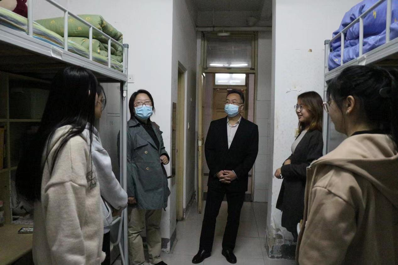走访过程中,院领导老师与同学们进行了亲切交谈,细心了解同学们生源地、生活习惯、同学关系、上课情况以及对学校的印象,同学们纷纷表示对学校提供的各方面生活条件都非常满意,并对校园环境大加赞赏。老师们鼓励新生珍惜大学生活,加倍努力学习;叮嘱同学们不要放松疫情防控,做好个人防护,遵守学校疫情防控规定。卫书记对同学们提出殷切期望,勉励同学们提早做好大学期间的人生规划,多读书,多去图书馆,制定好目标并为之努力奋斗,快乐充实地度过美好的大学生活。