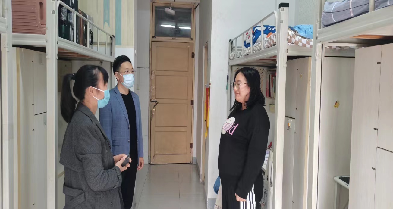 2022级新生已顺利完成军训,开始了正常的学习生活。为了进一步了解同学们思想状况和学习、生活情况,帮助同学们尽快完成角色转变,10月11日下午,我院党委书记卫建勋、副书记李青和各位辅导员老师走访了新生宿舍,为新生送去了温暖与关怀。
