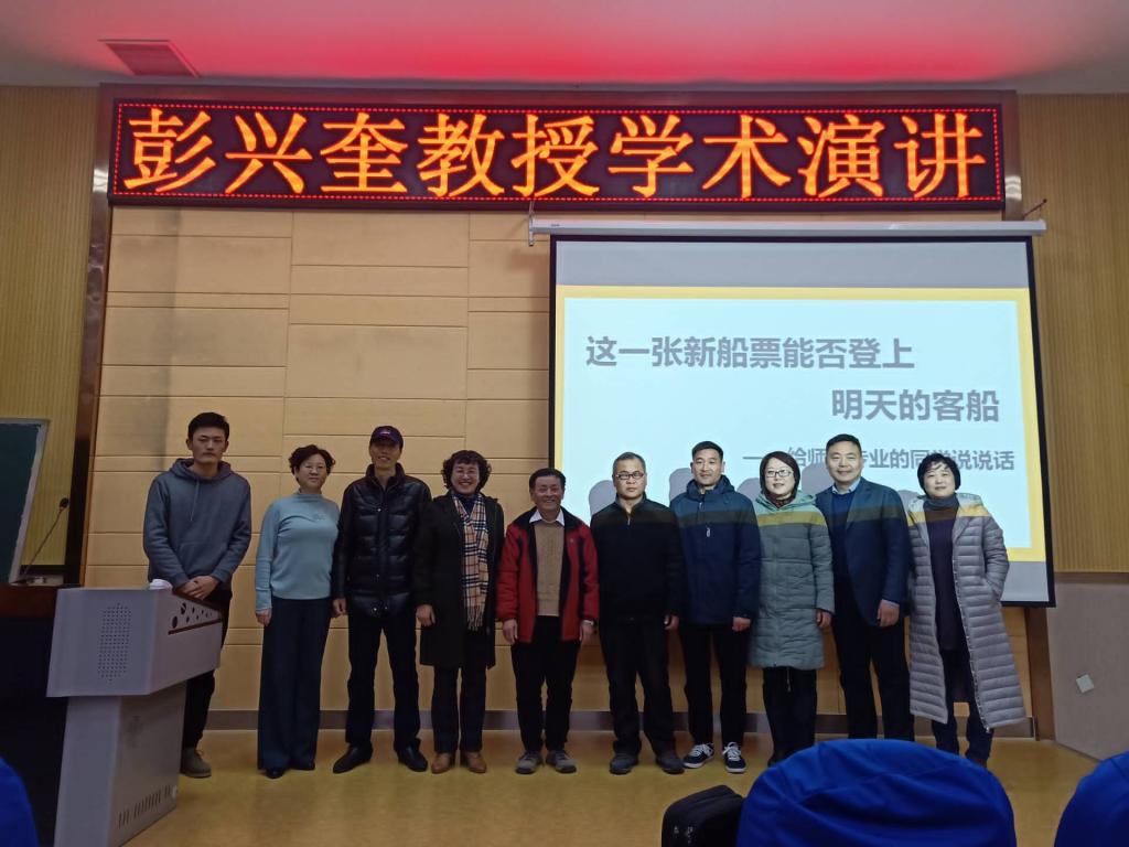 彭兴奎教授的演讲主要围绕“师范生应具备的从业技能”“如何开展语文课程教学实践”两方面内容展开。首先,彭兴奎教授结合自身从教经历,向同学们提出了教师应具备的两项基本功,即语言表达能力和思维能力;其次,彭兴奎教授对中小学语文教学现状进行了综合分析,在提到师范生从业技能素养的培养时,彭兴奎教授勉励同学们养成终身阅读的习惯,将教学理念和专业知识有机结合,并向同学们推荐了文学、综合教育、语文教育、人文社科等方面的书刊;第三,彭兴奎教授重点介绍了在济宁市南池小学推行的“1+10+N”语文教学改革的实践,指出语文教学应摒弃传统教学面面俱到又不得要旨的弊端,重在激发学生潜在的阅读欲望,借助阅读的“神奇力量”,回归语文学习情趣性本真。最后,彭兴奎教授针对同学们提出的“兴趣专长的发现与培养”“考试中的偏怪作文题目”“中小学生读物的择优筛选”等问题,给予了详尽的解答。王永超对彭兴奎教授的演讲作了总结,他对彭兴奎教授的语文教学改革实践和敢为人先的创新精神表示钦佩,并将在今后师范生培养过程中加强同彭兴奎教授课改团队的合作,切实提升师范生执业能力。