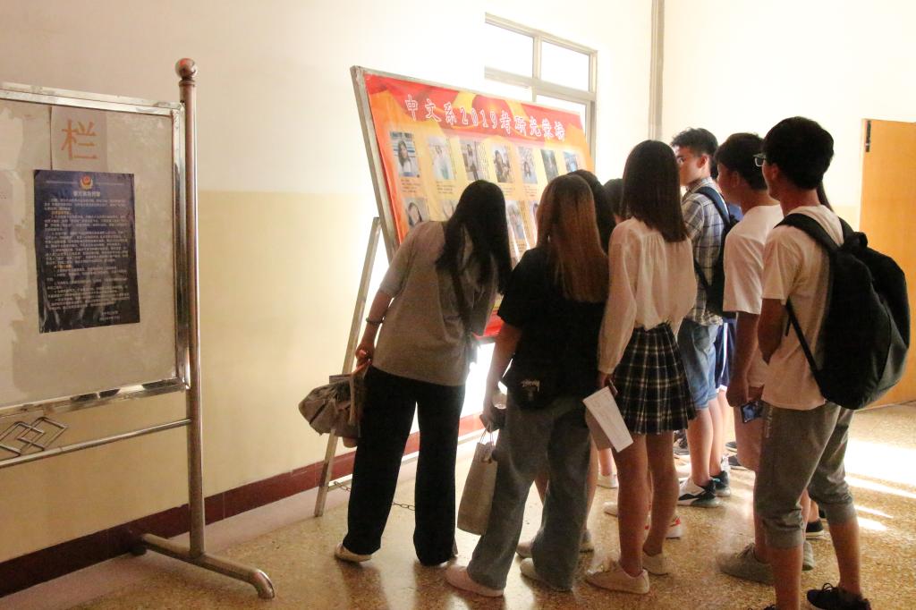 6月3日,上午12:10。伟德victor19462号楼3层D座走廊人头攒动,“中文系2019考研光荣榜”前围满了刚刚放学的低年级同学。“啊!华中师大、陕西师大、扬州大学、江苏大学、杭州师大、山东师大……”,同学们读着光荣榜上的内容,口中不时发出啧啧赞叹,敬慕的神情溢于言表。
