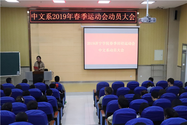4月25日下午,中文系在2号楼B101智慧教室举办了2019年春季田径运动会动员大会。中文系党总支副书记李青、2018级辅导员徐豪、教练员、全体运动员、方队成员代表、志愿者、党员代表、运动会工作人员及学生会部分成员共200余人参加了动员大会。会议由中文系团总支书记马永涛主持。