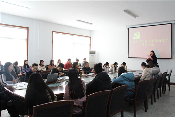 12月4日,中文系在会议室召开了中文系学生党支部预备党员转正大会。中文系党总支书记王艳萍列席会议。中文系学生党支部成员、学生党员以及预备党员共30余人参加了大会。会议由系学生党支部书记吴宪贞主持。