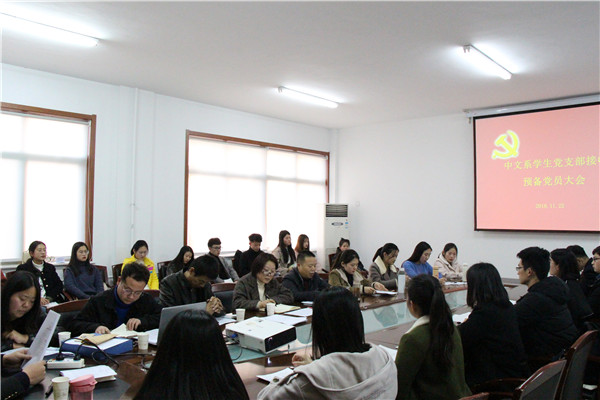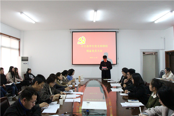 11月22日下午,中文系学生党支部在会议室召开接收预备党员大会。中文系党总支副书记李青列席会议。系学生党支部成员及学生党员、党员发展对象30余人参加了会议。会议由学生党支部书记吴宪贞主持。