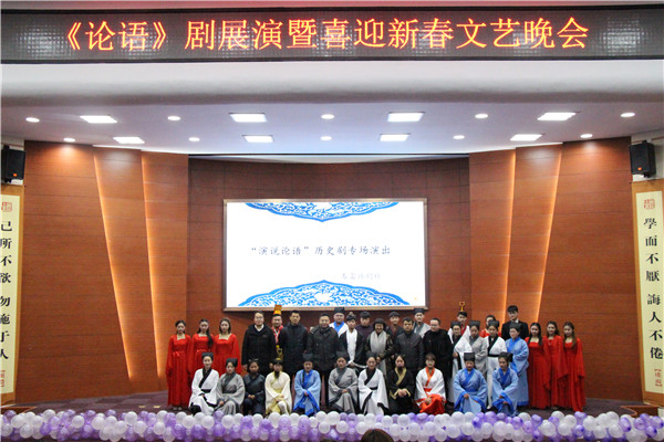 1月3日,由中文系主办,春雷话剧社承办的《论语》剧展演暨喜迎新春文艺晚会在理科楼报告厅举办。中文系党总支书记王艳萍、副主任王永超、办公室主任李青、春蕾话剧社指导老师邹向东、各年级辅导员和各系、各社团代表400余人观看了此次展演。