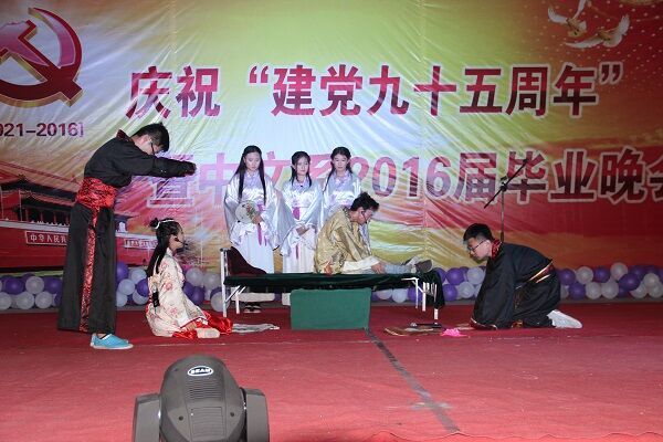 晚会在庄重典雅的开场舞中拉开帷幕。舞台剧《永远的格桑梅朵》展示了上个时代的爱情及亲情,表达了对以生命为旗、灵魂为足终生行走的进藏运输队女兵的敬重;历史剧《布衣孔子》表达了同学们缅怀先哲的情怀及身为炎黄子孙对创造灿烂文化、惠泽子孙先师的崇拜。歌曲《七子之歌》展露出同学们浓浓的爱国情怀,《映山红》表达了师生对共产党领导的红军的热爱,对英雄的崇敬,而《中国人》更是唱出了作为中国人的豪迈。演员们的精湛演技,嘹亮的歌声赢得了现场观众阵阵掌声。整齐响亮的诗朗诵《少年中国说》,唤起了中文学子慷慨报国的凌云壮志 ,跟着共产党实现中华民族伟大复兴的满怀豪情,也把整个晚会推向高潮。