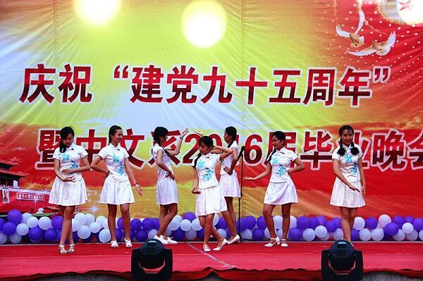 6月20日晚,中文系在文科楼文苑广场举办庆祝建党95周年主题晚会,校党委组织部副部长来维龙、中文系党总支书记吕祥华、系主任王钦鸿、副主任王振星及师生500余人参加了本次活动。