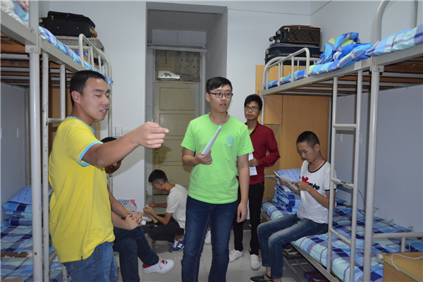 新生未报道之前,我系老师去各个宿舍进行安全大排查,为新生入住提供了良好的生活环境。新生报道第二天晚,我系各学生会成员在分管主席带领下分别到各个宿舍表示慰问。慰问的内容主要围绕未解决的问题展开,刚入校部分学生还会存在无法解决的问题,系学生会成员负责跟踪记录,及时与相关部门联系,并寻找解决方法,其次,还向新生强调安全方面的问题,财产安全与人身安全方面需要谨慎处理,提醒同学们要提升自我警惕和自我保护意识。同学之间要相互关心,互助友爱。最后,强调了上课时间和注意事项。