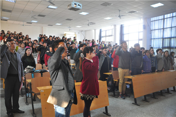 4月9日下午,中文系新党员入党宣誓大会在文科楼B201隆重举行,系党总支书记吕祥华、教工党支部书记吴宪贞出席本次大会,教工党员、学生党员和入党积极分子200多人参加会议。大会由学生党支部支书记孔国良主持。