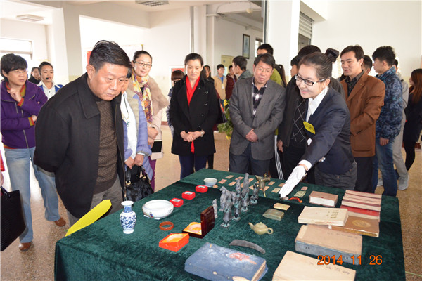 为了弘扬中华优秀传统文化,营造良好的校园文化氛围,11月26日上午,由校团委主办,中文系团总支、收藏爱好者协会承办的以“收藏,品读千载文化精华”为主题的收藏展览活动在文科楼四楼和五楼大厅举行。曲阜市邮政局副局长胡文、曲阜市集邮公司经理孔乐乐、伟德victor1946校团委副书记马新蕾、中文系主任王钦鸿、党总支书记吕祥华等领导和广大师生200余人参加了此次展览活动。
