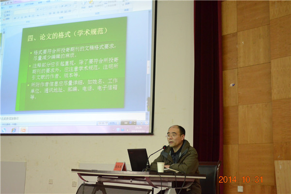 徐永斌研究员则从“文学类期刊角度”来谈论文写作的相关问题,告诫大家论文写作要注意四个方面:一是文章论题要新颖,引起读者的阅读兴趣;二是文章论点要鲜明,材料要详实,逻辑要清晰,提高文章的写作层次;三是文章结构要简明,突出重点,避免枝节散漫;四是要善于利用多学科交叉知识,注重论文专业性、延展性。徐先生的报告使同学们的论文写作思路更加明晰,大受裨益。