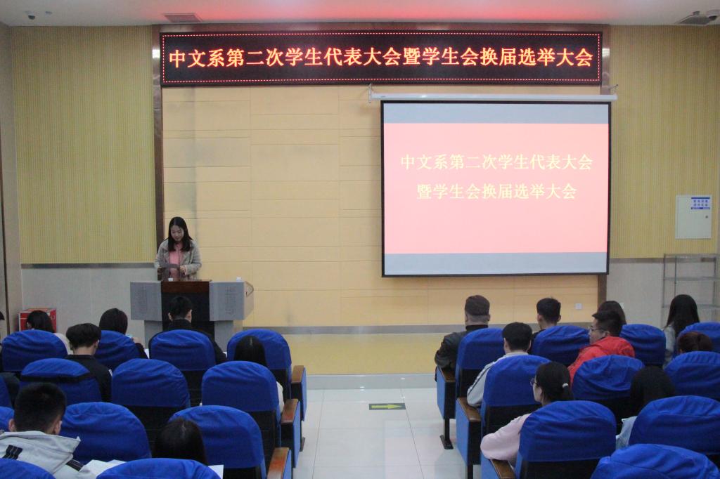 11月6日,中文系第二次学生代表大会暨学生会换届选举大会在文科楼B101室顺利进行。中文系党总支副书记李青、团总支副书记马永涛、各年级辅导员及团总支学生会成员参加了本次大会。
