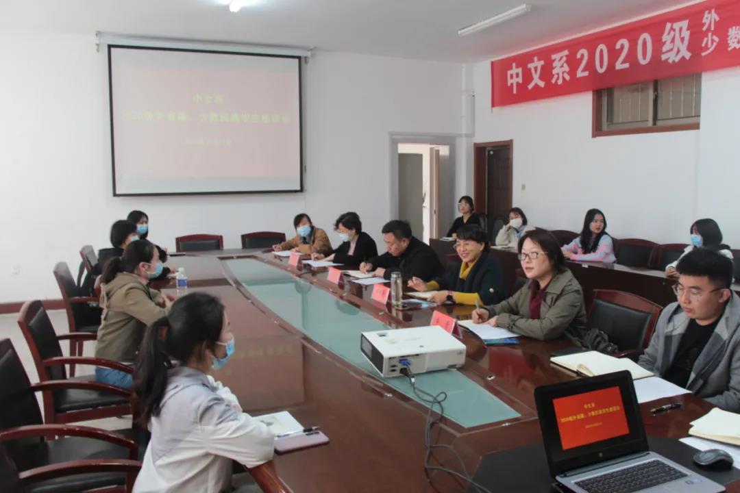 10月21日下午,中文系在系会议室召开2020级外省籍、少数民族学生座谈会。中文系党总支书记王艳萍、系主任王永超、党总支副书记李青、副主任葛艳丽、各年级辅导员及20多位来自多个省、自治区、直辖市的2020级外省籍、少数民族学生代表参加了本次座谈会。会议由党总支副书记李青主持。