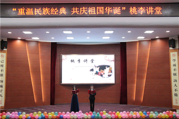 12月18日晚,中文系“重温民族经典,共庆祖国华诞”桃李讲堂演讲活动在理科楼报告厅成功举办。中文系党总支副书记李青、各年级辅导员及中文系2019级同学参加了本次活动。中文系吴宪贞副教授、王祥副教授、颜伟博士出任点评嘉宾。