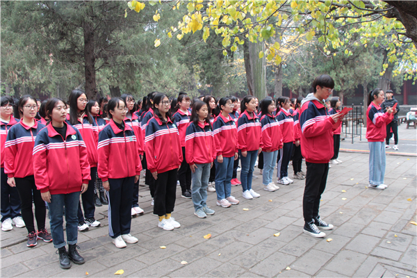万仞宫墙下,金声玉振起。早8:00,师生在明故城万仞宫墙前一同观看了开城大典。大典再现了千年前的礼乐文明,展示着儒家文化的典雅端庄。在导游的讲解下,师生一行进入孔庙,踏上青色的石板路,赏着满眼的苍松翠柏,千年文化,古景古韵。杏坛前,同学们朝向大成殿孔子像行拜师礼并齐声诵读《论语》;祭祀孔子的音乐响起,书声朗朗中,师生一同领略儒家精髓,感受厚重的人文气息。随后,师生一行来到“天下第一人家”孔府。穿过重光门,越过三大堂,布局严谨,气势宏伟的孔府全景展现。走进圣贤,亲历生活,神圣感油然而生。出孔府,到颜庙。青瓦灰墙,古巷幽深。师生们感悟复圣颜子“贫而好学”“安贫乐道”“独善其身”的思想精髓。