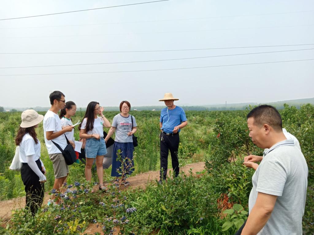 实践队老师成员首先与临沂市派驻杨谢村“第一书记”马辛格 、 党支部书记郭增安 、村主任郭增鑫、村支两委班子就党的扶贫政策落实及党建工作的开展,农村困难群众家庭经济现状、农村产业结构调整、助力脱贫情况等问题进行座谈交流,了解该村扶贫、党建整体状况。得知临沂市杨谢村地处沂蒙山山麓,近年来通过发展蓝莓种植及深加工生态产业、党群“一对一”帮扶困难群众等方式摆脱贫困,实现全村“脱帽脱贫”。随后实践队成员到贫困户家中实地调研,与扶贫住户就家庭生活保障、子女教育就业、大病保障等问题进行面对面交流,填写调查问卷,取得了第一手资料。随后,实践队在村主任郭 带领下,师生们一起赴该村蓝莓研究所、育苗基地,蓝莓种植采摘基地进行实地调研。该村蓝莓生产基地占地近3千亩,带动全村一半以上人口就业,成为带动该村脱贫致富的支柱产业。