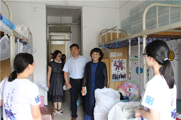 6月20日上午,中文系领导班子成员及各年级辅导员,深入学生宿舍,看望即将离校的2019届毕业生。