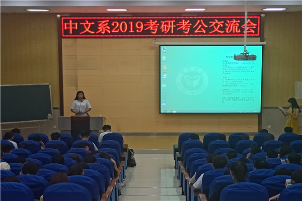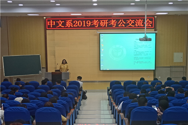 6月12日晚,由中文系团总支主办、学生会学习部承办的“2019年榜样的力量——考研考公交流会”在文科楼B101室举办。交流会邀请了五位考研考公成功的毕业生前来交流经验。