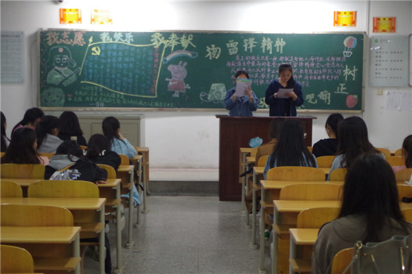 3月29日,中文系在2016级、2017级各教室举办“扬雷锋精神,树正确观念”主题团日活动。