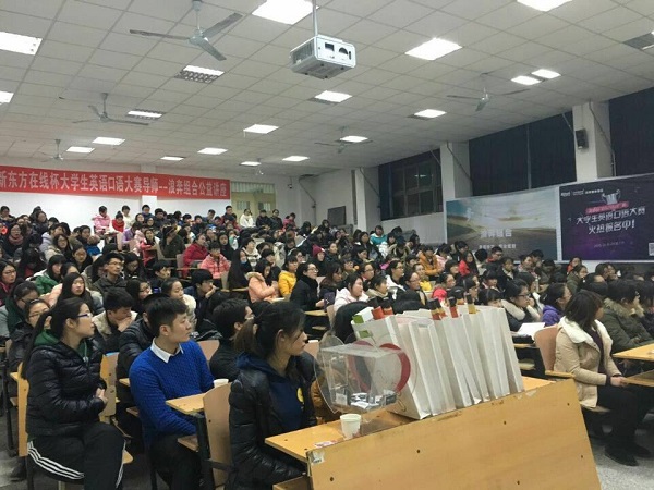 临近大学英语四、六级考试,为激发广大同学们学习英语的热情,提高英语学习的能力。12月15日晚6点,由北京新东方主办,中文系团总支学生会承办的《梦想之旅》公益讲座在文科楼B201室举办。第六届“新东方在线”杯大学生英语口语大赛导师王永峰、刘尚杰等出席了本次讲座。
