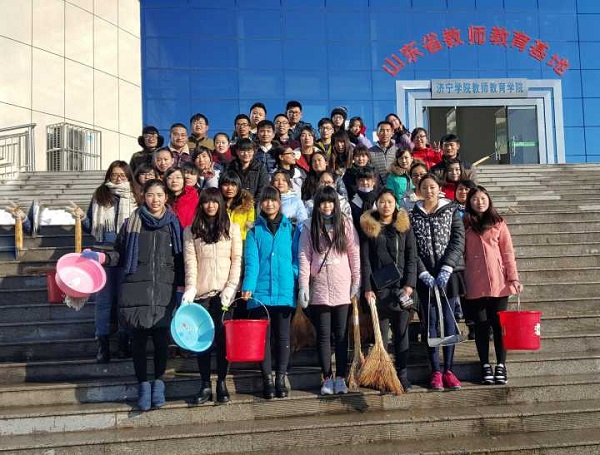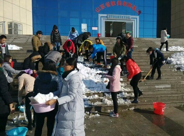 为应对雨雪天气道路湿滑,保证师生的校园出行安全。11月26日下午1点,由中文系团总支主办、中文系团总支学生会志愿者部承办的“志愿扫雪”活动在伟德victor1946中文系顺利开展。中文系团总支2015届学生会全体成员及2014级、2015级各班志愿者代表参加了本次活动。 在本次活动中,志愿者们积极踊跃参与,分为两队,有秩序地拿着清理工具,清扫了被积雪掩埋且结了冰的教育系门前道路和文科楼大楼梯区域。大家一起在严寒中与路面的冻冰做着斗争。遇到坚硬的冰块,同学们端来一盆一盆的水倒在上面再铲。当教育系前道路清扫完之后,大家又到文科楼大楼梯帮助同伴一起清理。通过大家的齐心协作,清扫出一片无雪无冰的安全防滑区域。最后大家集体合影留念并将清理工具有秩序放回。 本次活动增强了同学们的团结意识和集体荣誉感,锤炼了同学们坚韧的意志,保障了师生们安全出行,为师生营造了一个安全、温馨的工作与学习环境。