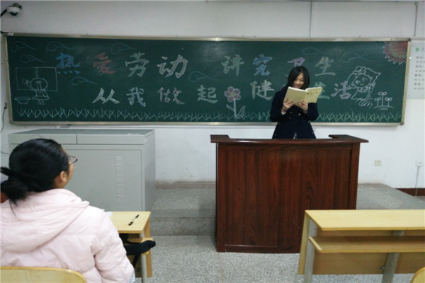 为进一步推动我系爱国卫生工作的开展,落实我校关于大力开展爱国卫生月的工作精神,4月2日在我系举办了以热爱劳动,讲究卫生,从我做起,健康生活为主题的团日活动。本次活动参与人员为2013、2014级全体同学,活动地点为中文系各班教室。