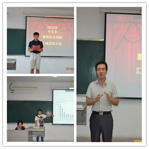 为更好地总结暑期社会实践经验,做好暑期社会实践汇报工作。9月11日17:00在文科楼A307室开展了中文系2014暑期社会实践汇报总结大会。中文系团总支书记孔国良、中文系学生会成员、中文系七支社会实践队伍参加了此次大会议。大会由中文系学生会素质拓展部部长主持。