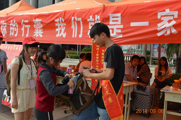 为发挥党员的先锋模范带头作用,推进在迎新工作中创先争优的开展。9月6日,中文系党员代表组成党员志愿服务队,积极投入迎新工作之中。 中文系学生党员志愿服务队分为两个志愿服务点:一是在图书馆南面的迎新服务点,二是在新生宿舍楼楼下。学生党员佩戴绶带,鲜红醒目的服务标志成了一张张流动的“名片”。在图书馆南面中文系迎新服务点,学生党员接待新生和家长,耐心解答各种问题,为学生家长安排休息区。在新生宿舍楼楼下,学生党员完成志愿者的交接工作,帮助新生搬行李,找宿舍。学生党员用自己的行动把“创先争优”的理念和“奉献、互助、友爱、进步”的志愿服务精神传递给新同学。 中文系学生党员在迎新活动中服务热情周到全程高效指引和跟踪,以实际行动践行“全心全意为人民服务,永葆共产党员先进性”的承诺,以极高的热情和素养,充分展示了中文系学生党员良好的精神风貌。