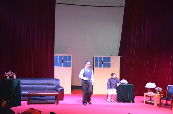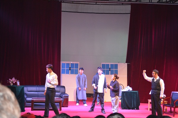在一段充满青春气息的开场舞后,话剧演出拉开帷幕。在灯光的绚烂变化中,话剧《疯狂的考试》上演,演员诙谐的话语以及传神的表演令观众开怀大笑;曹禺的经典之作《雷雨》,从某种程度上揭示和批判了带有封建性的中国资产阶级的生活方式和道德的虚伪性。演员将剧中的爱恨情仇演绎的淋漓尽致,令全场观众为之动容,现场掌声雷鸣;最后一场《我的大学》,剧中伴有同学们日常生活照片的展示,反映了当代大学生的生活,让在场观众感同身受,并启示当代大学生要珍惜青春年华,积极奋发向上。