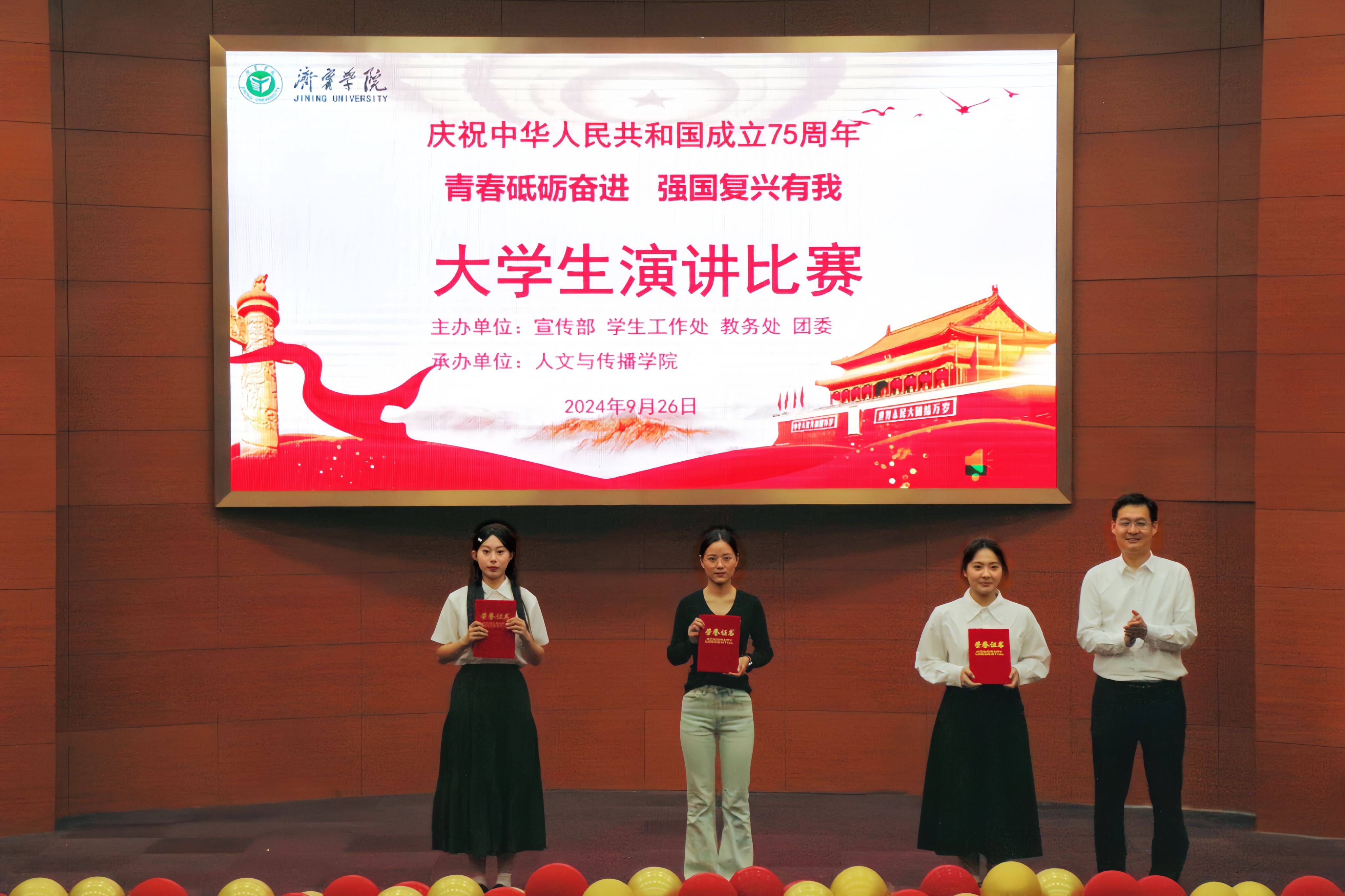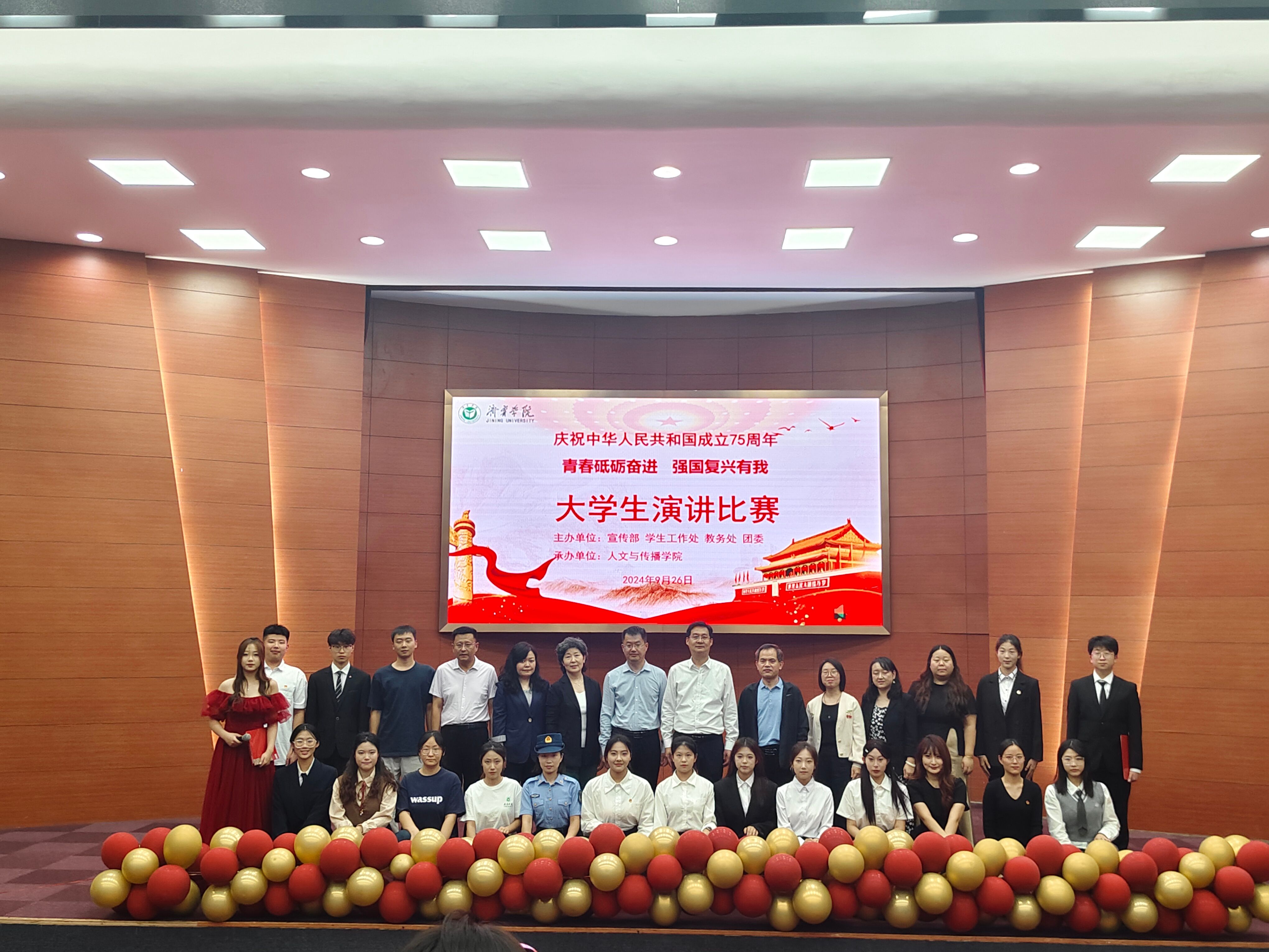 9月26日下午,由学校党委宣传部、学生工作处、教务处、团委主办,我院承办的庆祝中华人民共和国成立75周年“青春砥砺奋进 强国复兴有我”大学生演讲比赛在理科楼报告厅举行。校党委委员、副校长赵明出席,党委宣传部、学生工作处、我院相关负责人参加。