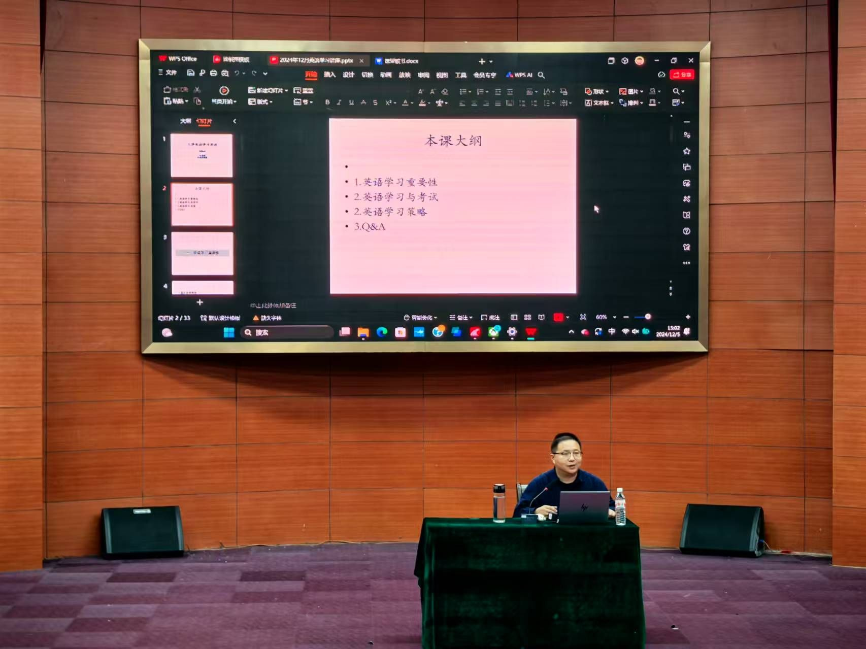 12月5日,我院邀请外国语学院青年骨干教师石尚辉举办考研英语专题讲座,为同学们讲解考研英语备考、应考策略,助力考研学子取得优异成绩,增强考试信心,推进学院学风建设。