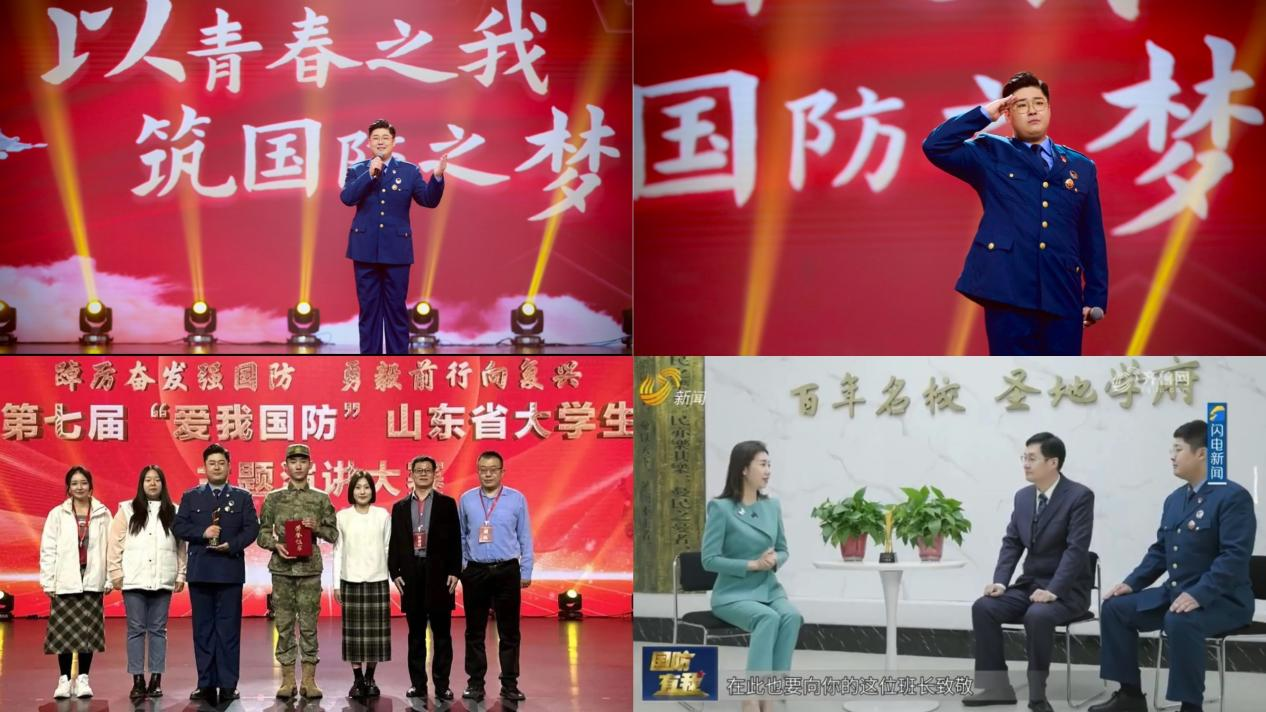 作为一名学生党员,他积极参加各类比赛、宣讲活动。先后荣获2023年山东省防震减灾诗文诵读大赛二等奖,2024年山东省中华经典诵读大赛大学生组一等奖,2024年山东省第七届“爱我国防”大学生主题演讲大赛一等奖第一名,并被多家媒体报道,为学校赢得了荣誉。作为伟德victor1946全国大学生“两弹一星”精神志愿宣讲团成员,一年来开展宣讲20余次,用宣讲力量传递爱国声音,展现出济园学子青春爱国风貌。