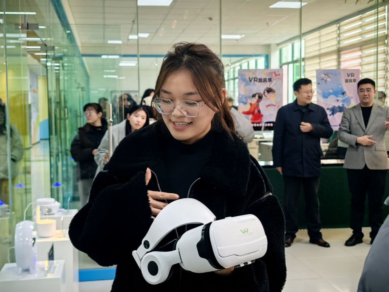 工作人员围绕赋能中心的发展历程、服务理念以及近年来在推动学生就业创业方面所取得的显著成果进行了详细介绍。学生们依次观摩了VR沉浸式数字文化创意项目组、中老年智能健康服务产业孵化组、多元化服务体系下的量体裁衣组、数字乡村-农产品地域特产大数据溯源营销慧农平台组等创业团队项目并现场进行沉浸式体验。