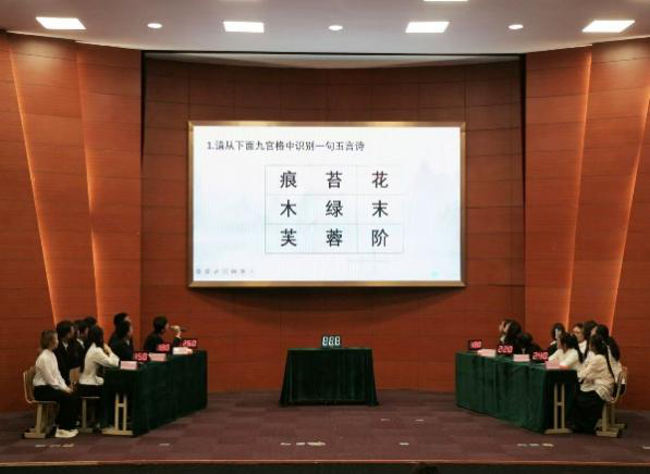 本次大赛设置“飞花令”“点字成诗”“头脑风暴”三个环节,重点考查参赛选手的诗词素养和应变能力。经过激烈角逐,最终“三家诗”队获得比赛一等奖,“追风赶月”队、“飒沓流星”队获得二等奖,“雏凤清鸣”队、“居高自远”队、“仗剑天涯”队获得三等奖。