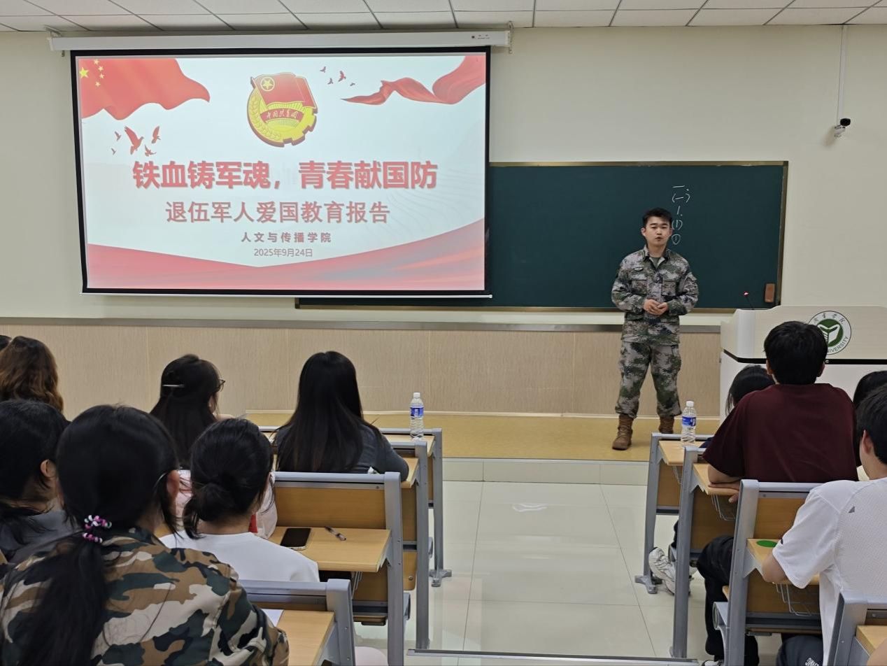 在国防教育方面,我院退役大学生刘雨森进行分享。讲解中,他就大学生如何参军入伍、入伍后的军人职业发展,以及国家对退役军人升学、就业、转业等的各项优惠政策做了详细解读。他结合自己的军旅生活,和大家分享了服役期间的纪律养成、意志锤炼经历,说明军人作风对成长自律性、社会责任感培养的巨大意义。整个经验分享,呈现了他作为退伍军人“退役不退伍”的爱国精神和家国情怀。