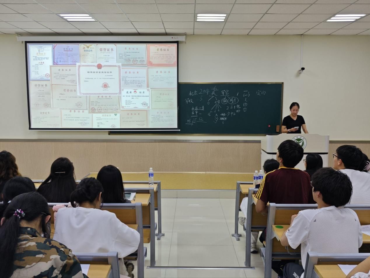 在学业成长方面,我院2023-2024学年国家奖学金获得者王若霖从专业学习、竞赛参与、科研实践三个层面,系统分享了大学学业的规划方法。她结合自身学习成长的过程,详细介绍了文献检索、课题论证、团队协作的实操要点,为新生提供了可借鉴的学业发展范式。