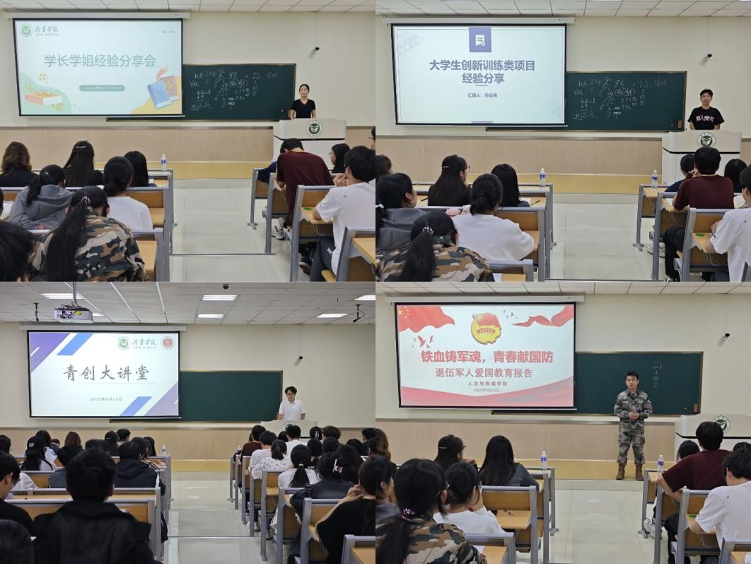 在学长学姐经验分享会上,学院以榜样引领与创新赋能为主题,邀请了四位高年级学长作经验分享。国家奖学金获得者王若霖从专业学习、科研竞赛、团队协作三方面,分享“学业进阶”方法论;退役大学生刘雨森以自身军旅经历为切入点,讲解了我国大学生征兵入伍的政策,激发了新生参军入伍和保家卫国的情怀。大学生创新创业项目国家级和省级项目负责人张昊、孙志伟分别系统讲解创新创业项目的申报全流程与选题策略,指出“专业所长+社会需求+个人兴趣”的融合创新之道。通过学长学姐的经验分享,新生深化了对大学专业学习、学科和创新竞赛、征兵入伍等认识,有利于新生尽快适应大学生活找到成长方向。