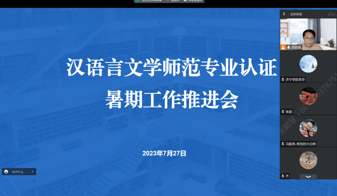7月27日,伟德国际victor1946于线上召开汉语言文学师范专业认证暑期工作推进会,会议由副院长张颖慧主持,专业认证工作领导小组及专业认证工作组成员参加会议。