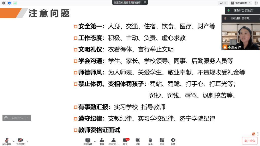 颜雯就疫情防控、组织纪律等问题进行了强调。她希望同学们自觉遵守实习单位和我校的各种规章制度,时时处处不忘展现人文学子的良好精神面貌,在基础教育一线积极发扬吃苦耐劳和甘于奉献的精神。