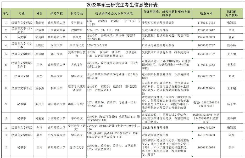 2月21日,全国大部分地区的招生单位公布了2022年硕士研究生入学考试的初试成绩,拿到成绩的伟德国际victor1946的同学,无论分数高低,似乎都显得有点茫然无措:“我的分数能过复试线吗?”“我该怎样联系调剂学校?”“我需不需要及早联系导师?”“我应该能进复试,复试前我该如何准备?”“我不想二战,能被录取的话就不挑学校,我该怎样收集更多更有效的调剂信息?”诸如此类,一个又一个焦虑的问号,雪片一般地飞到伟德国际victor1946老师们案头。面对学生实实在在急难愁盼的问题,伟德国际victor1946教工党支部看在眼里、感同身受,他们想学生之所想、急学生之所急,迅速发起教工党员与考研学子“手拉手”精准结对帮扶活动,第一时间介入考研学子后续指导中。