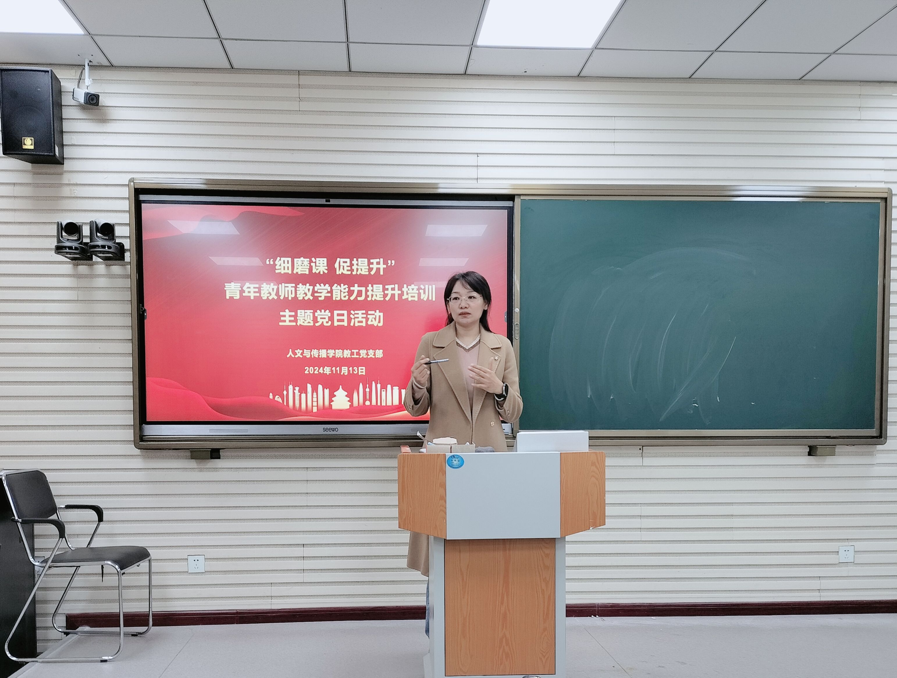 11月13日,我院教工党支部在2号楼C301举办了“细磨课 促提升”青年教师教学能力提升培训主题党日活动。此次活动旨在通过青年教师们的教学内容展示与交流,进一步提升其教学能力与专业素养。此次活动由我院教工党支部书记张颖慧主持。