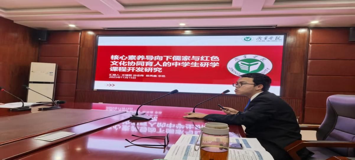 会议上,王瑞哲、孙志伟、陈秀鑫在李艳教授的指导下,提交了题为《核心素养导向下济宁市儒家与红色文化协同育人的中学生研学课程开发研究》的论文。该论文依托伟德victor1946公益辅导、“三下乡” 、研学游等创新创业实践,深入探索了师范生参与研学课程设计与开发的核心价值及实践路径。在15 日下午的分会场,王瑞哲同学向与会专家详细介绍了研学课程开发的核心可行性,系统阐述了课程的设计思路、实施路径与优化策略。其发言逻辑清晰、见解独到,得到了潍坊学院张鲁宁教授等与会专家的高度认可。