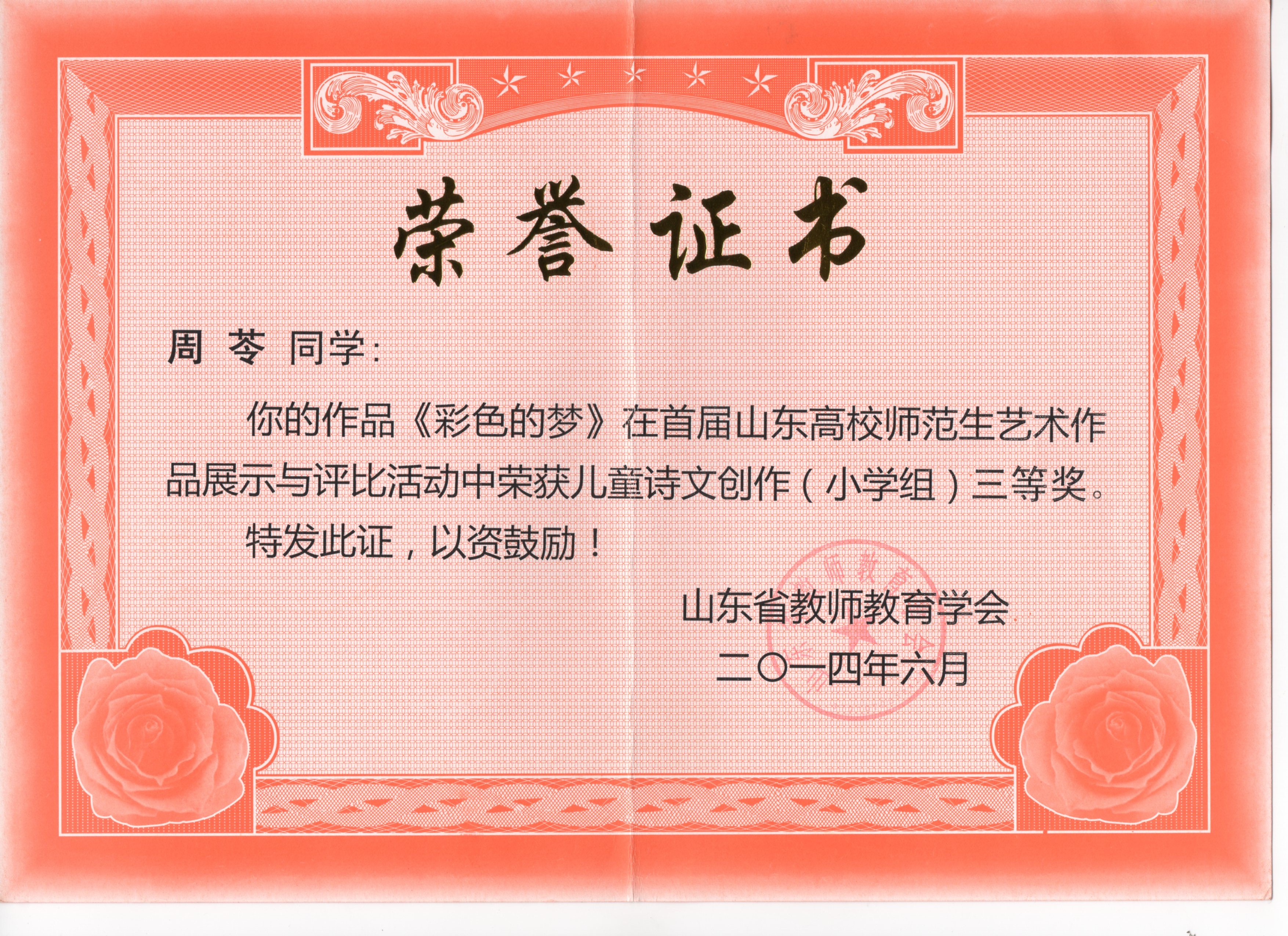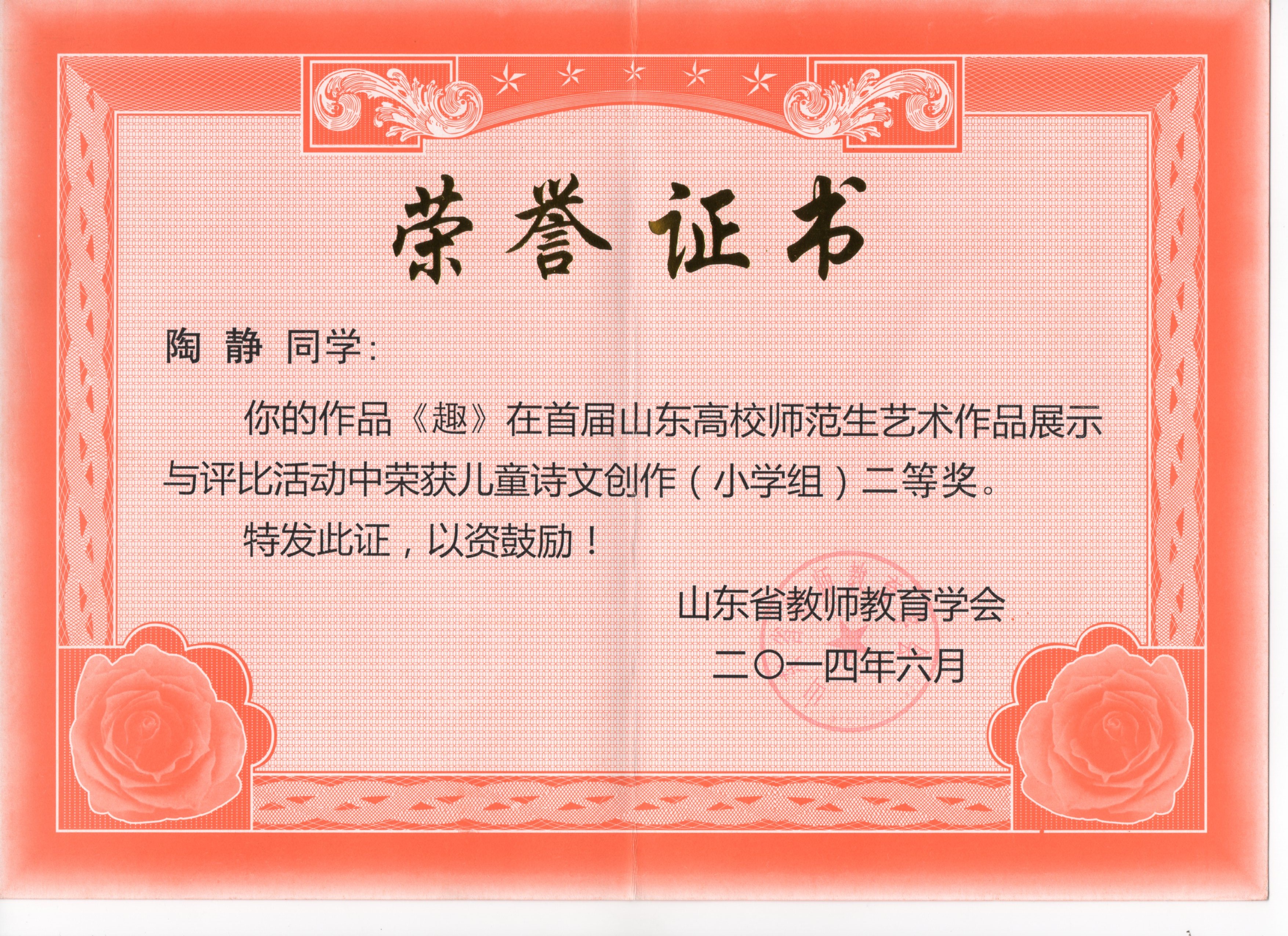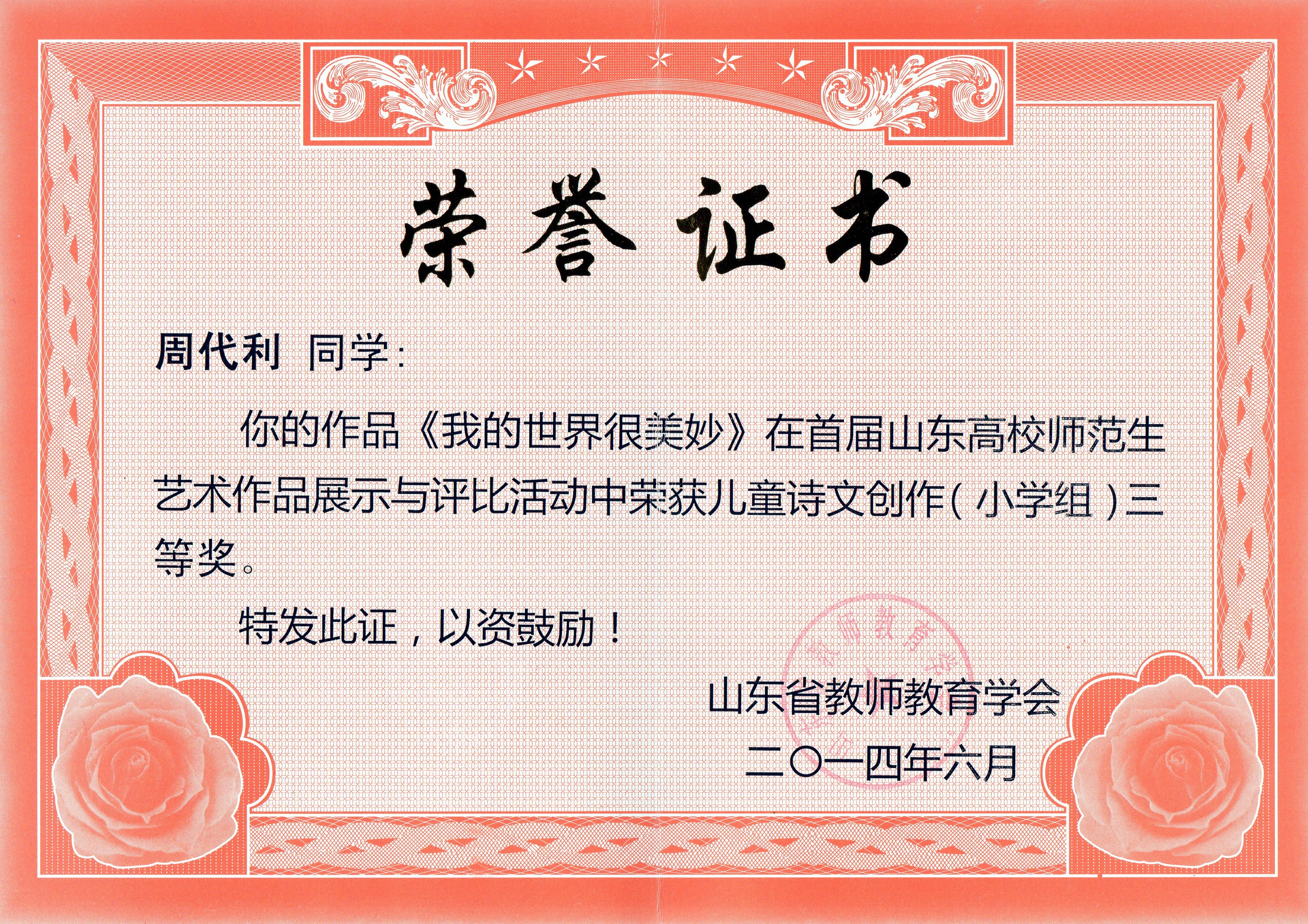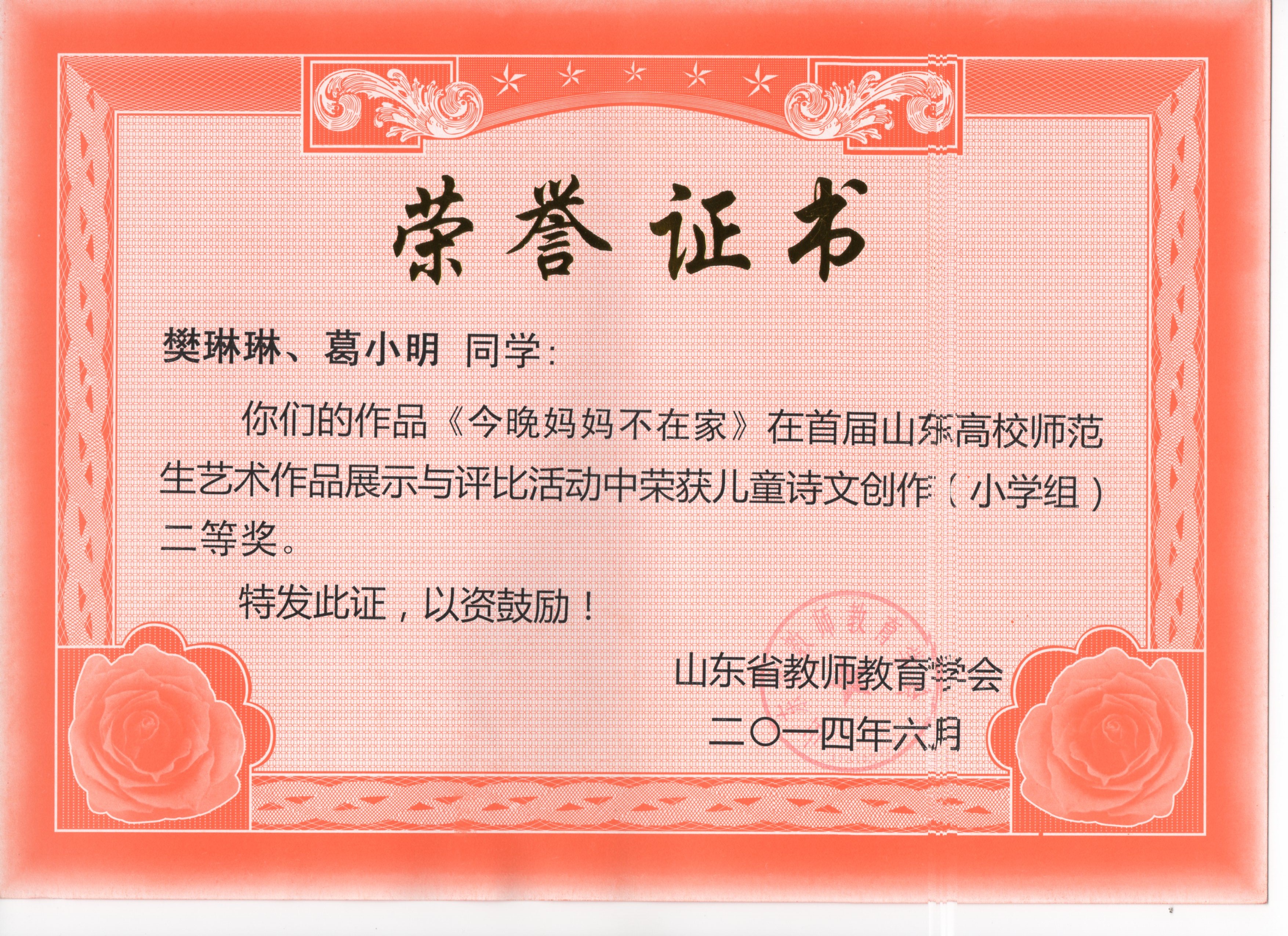 首届山东高校师范生艺术作品展示与评比活动由山东省教师教育学会主办,临沂大学承办。接通知后,我系师生积极准备,广征作品,共提交了四个系列的60份作品参加了儿童诗文创作、儿童剪贴画、大学生书法、环保手工艺品制作四个项目的评比与展示。最终我系参加评比的师范生艺术作品获得二等奖2项、三等奖3项,