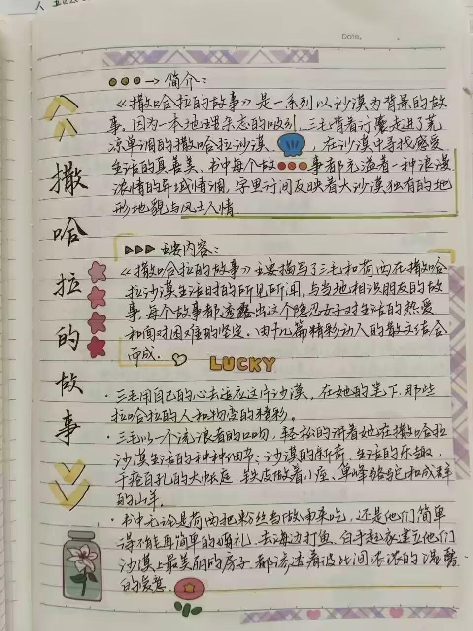 在本次最美笔记大赛中,同学们积极踊跃参加,选送笔记书写规范,布局美观,内容丰富且有深度。