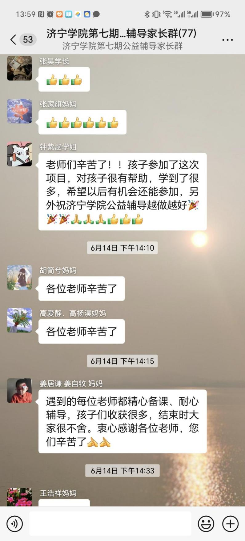 图2 家长群中家长对志愿者的感谢与肯定