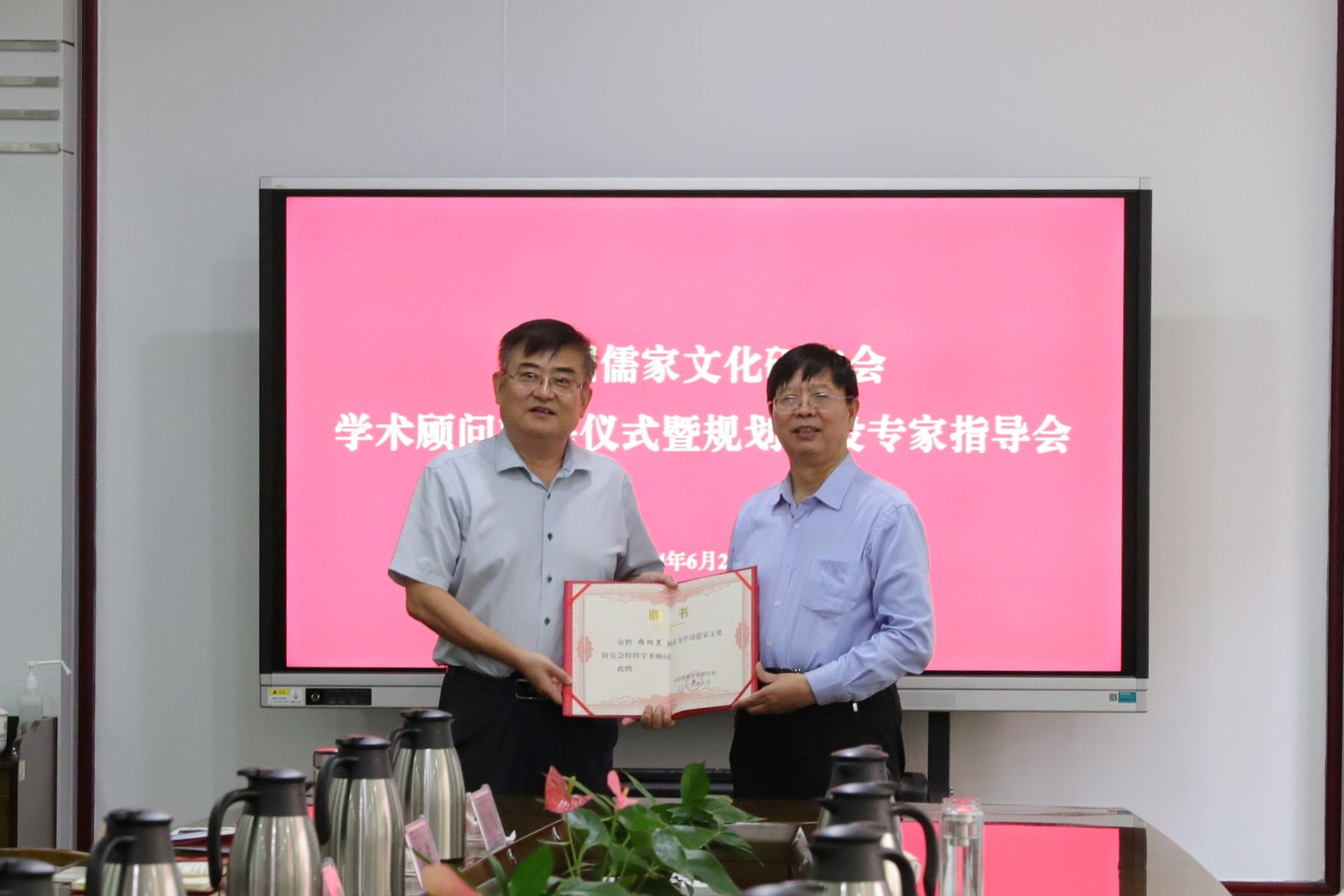 6月28 日下午,中国儒家文化研究会学术顾问敦聘仪式暨规划建设专家指导会在行政楼A221举行。济宁市人大常委会原副主任陈国华,山东省文史研究馆馆员、曲阜师范大学特聘教授、曲阜师范大学乡村儒学研究院院长、山东大学教授颜炳罡,曲阜文化建设示范区党工委副书记、推进办主任朱湘华,中共曲阜市委常委、宣传部部长孙景亮,曲阜市姚村镇党委书记李瑾等领导专家应邀出席会议。校党委副书记、中国儒家文化研究会会长丰家雷出席会议并讲话。会议由伟德victor1946党委委员、宣传部部长刘克非主持。研究会主要成员参加会议。