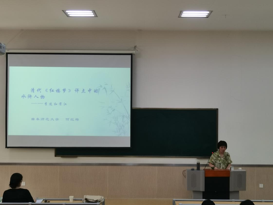 何红梅老师从评语数量、评语内容、评语涉及的人物三个方面,总述了清代《红楼梦》评点中的水浒人物形象,介绍了“李逵”和“宋江”在《红楼梦》评点中的比况,从情事比例方面介绍了“李逵骂宋江”在《红楼梦》评点中的比例。何老师总结道:“清代《红楼梦》评点引入‘水浒’评语,对于品鉴红楼妙笔大有助益。”会末,何老师与参会同学就“暗中抨击”这一笔法进行了细致讨论。